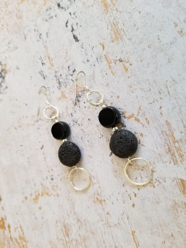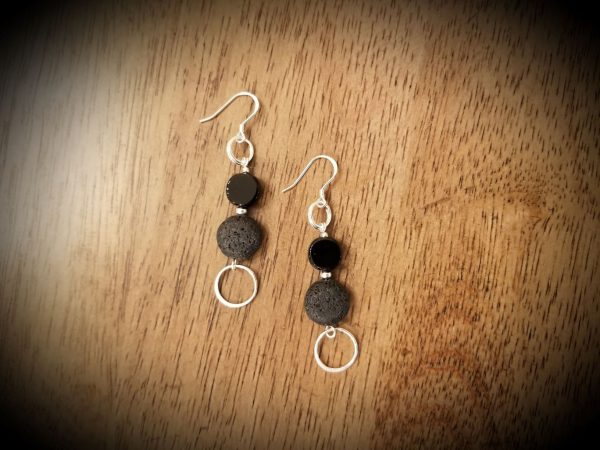Be the first to review “E154 Black Lava and Black Jet Silver Diffuser Earrings”