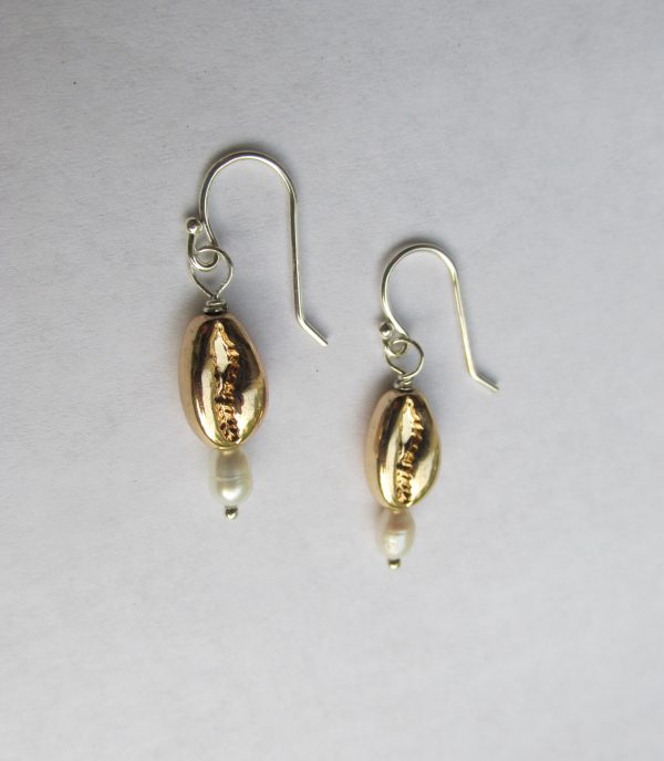 Be the first to review “E183 Gold Cowrie Shell and White Freshwater Pearl Two-Tone Earrings”