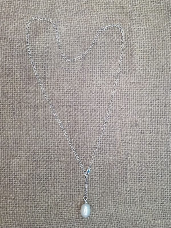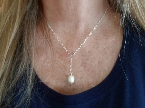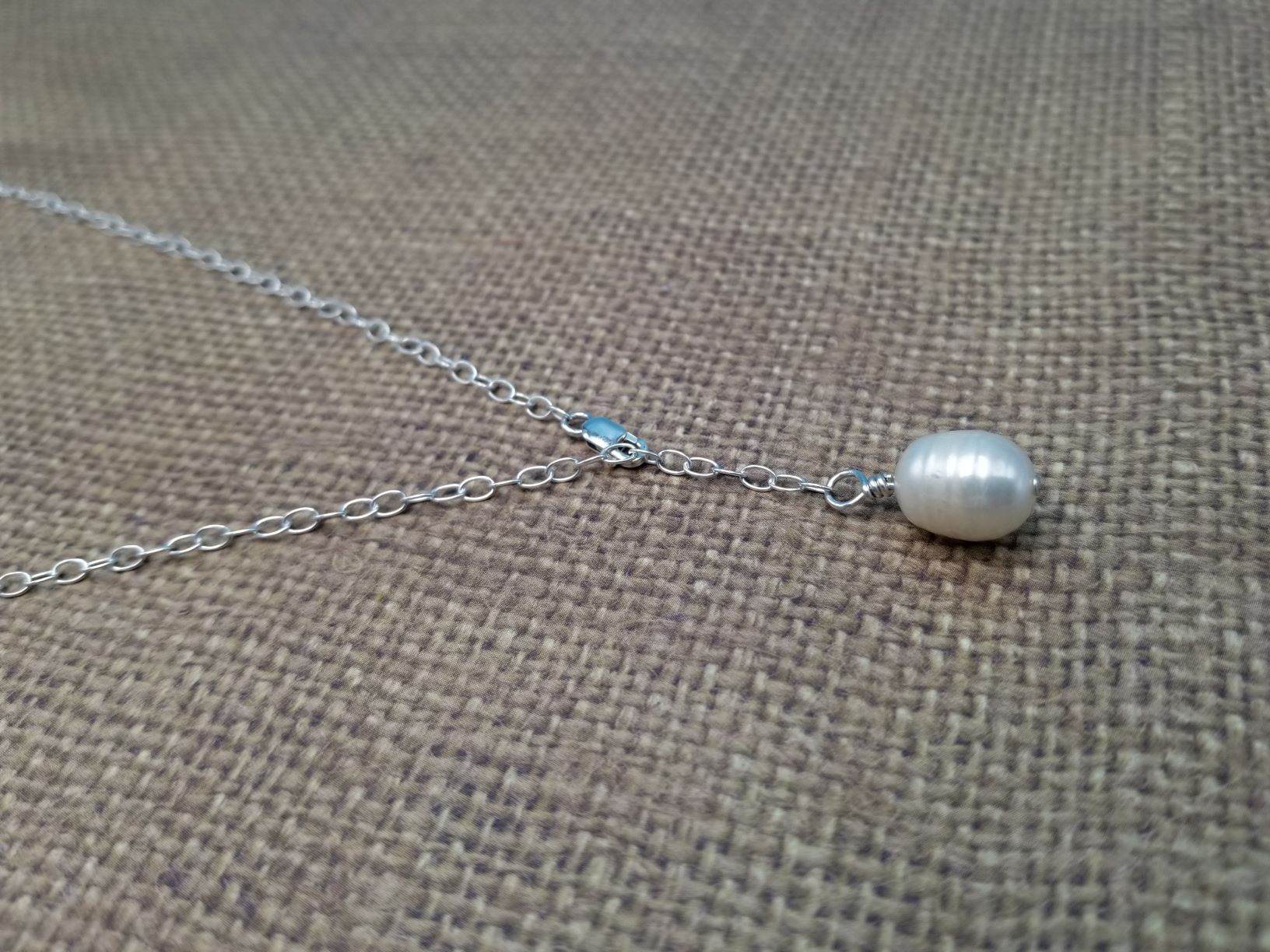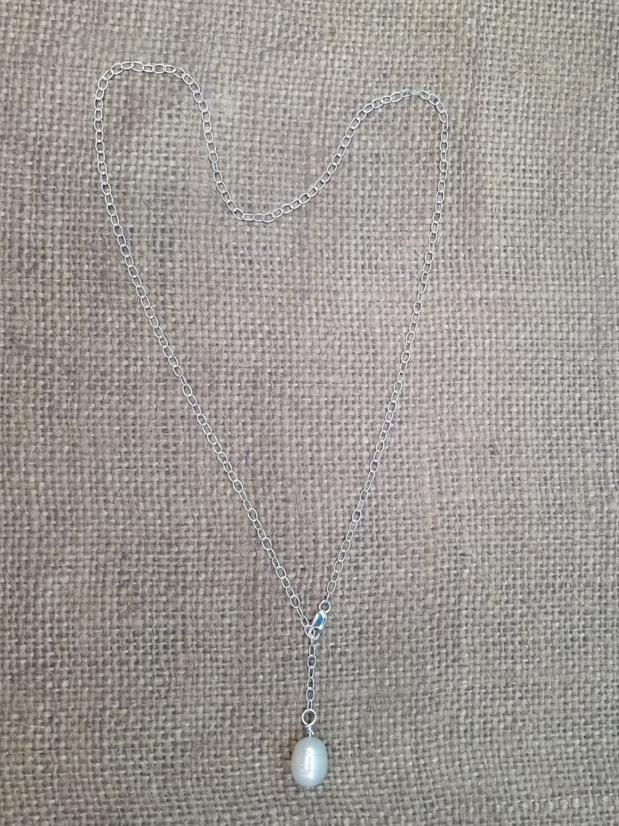 N185 White Freshwater Pearl Silver Lariat Necklace