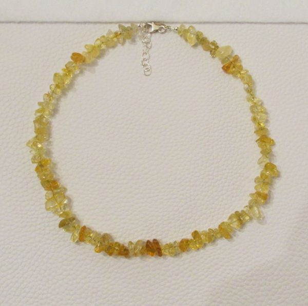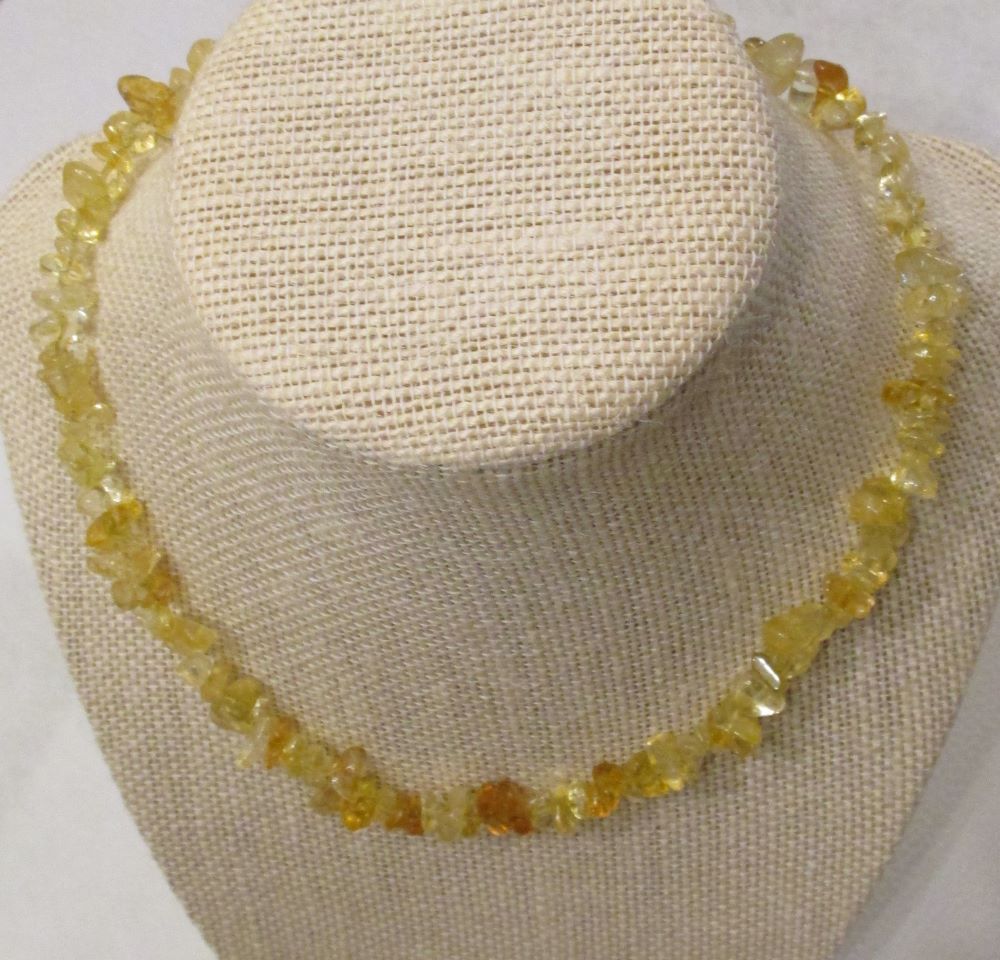 N228 Rustic Yellow Citrine Gemstone Beaded Necklace – Materials: Shades of yellow natural citrine gemstone beads, Beading wire, sterling silver findings including lobster clasp. Measures an adjustable 16-17.50 inches long. Handmade in New Hampshire. *Citrine is believed to enhance confidence, happiness and strength. *Citrine is often used as a November birthstone.