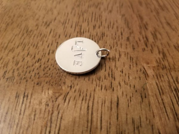 P372 LOVE NH Silver Tone Hand Stamped Pendant